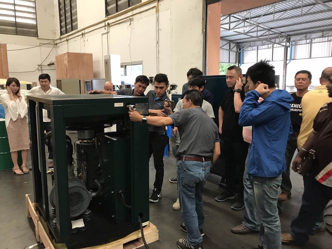 在理論知識培訓(xùn)后,隨后的培訓(xùn)安排在泰國開山的廠房和車間內(nèi)進(jìn)行,現(xiàn)場開放了四個(gè)系列的8余個(gè)機(jī)型供代理商了解,開山公司員工分4批分別給各代理商服務(wù)人員進(jìn)行現(xiàn)場交流和答疑。