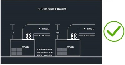 7、壓縮機(jī)排氣引風(fēng)罩,截面面積不能變徑、縮小、也不能拐彎太多、太長(zhǎng) ;導(dǎo)致排風(fēng)不暢、背壓,造成機(jī)組高溫停機(jī)。